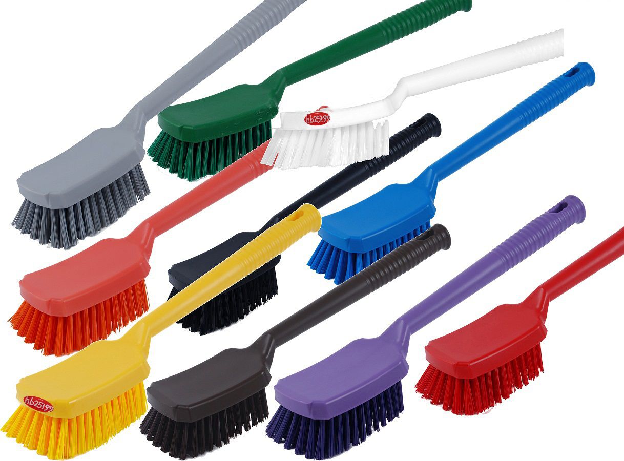 卫生级清洁工具刷,耐高温,耐酸碱、不掉毛、不褪色,多色可选,便于分区使用和管理,材料符合FDA要求;我们经营有各类食品级清洁手刷、面粉刷、洗地刷、扫帚、簸箕、推水刮、冷凝水接水刮、清洁管刷、刮板铲、桶、工具组合挂架、食品行业专用清洗机设备等
