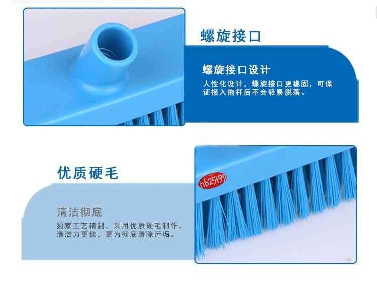 食品加工地面清洁刷洗地刷洗地刷头带标准螺纹接口,可配不同长度的铝杆、不锈钢杆、纤维杆使用,适用于食品工厂车间、餐饮厨房、制药车间等地面地板的刷洗与清洁